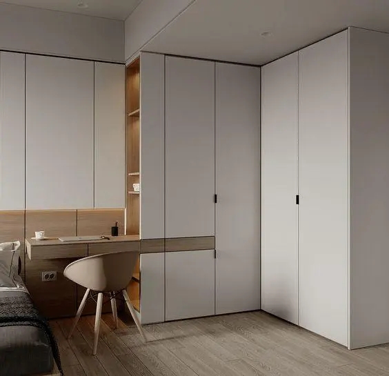 2.地面和柜子水平垂直,嵌入式衣柜或其他一些嵌入墻體的柜子好處不少,既增大了柜子內(nèi)部的空間,又顯得柜體簡潔、大方。應(yīng)注意安放柜子的地面和柜子側(cè)面的墻體必須水平和垂直。否則,等安裝柜子的時(shí)候,會(huì)很難處理縫隙,勉強(qiáng)填補(bǔ)縫隙,視覺就有扭曲,顯得很粗糙,工藝不精細(xì),效果就會(huì)大打折扣。