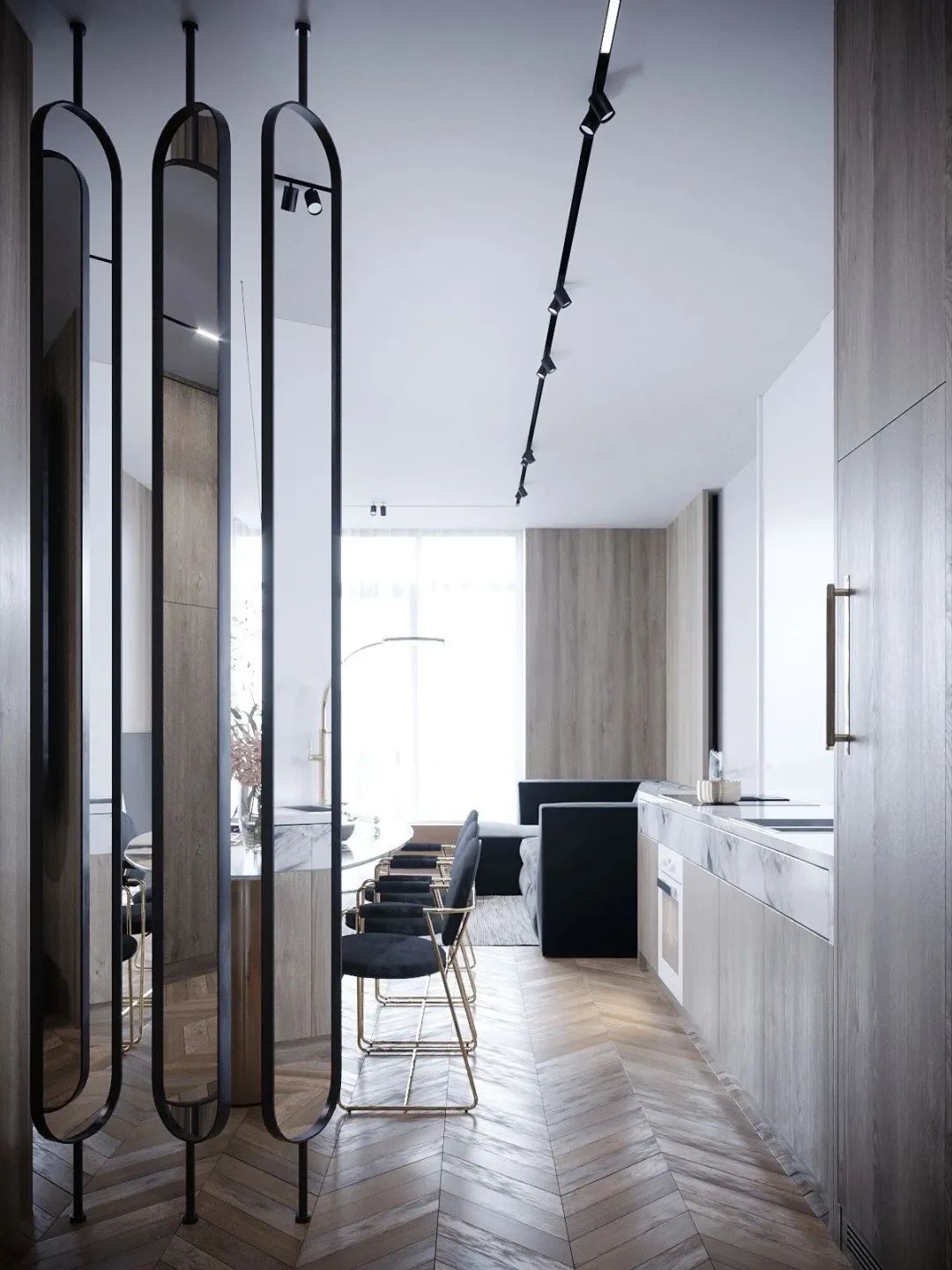 設(shè)計(jì)師在設(shè)計(jì)時(shí)使用了精致的家具與干凈的線條,選用天然材質(zhì)搭配金屬,打造出精致現(xiàn)代風(fēng)小宅。