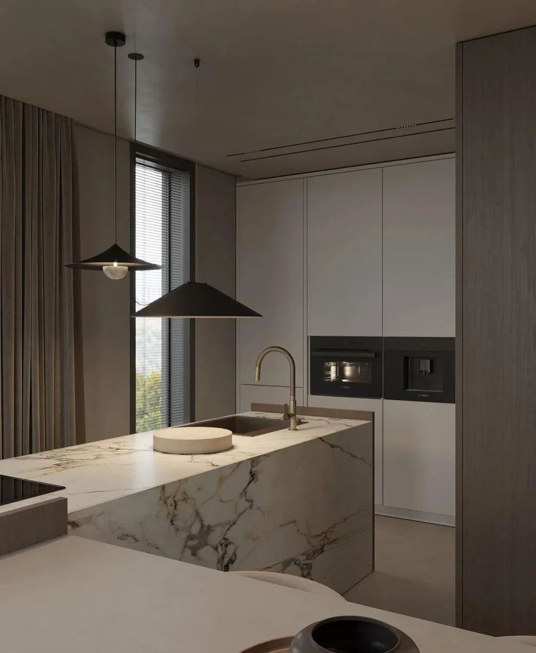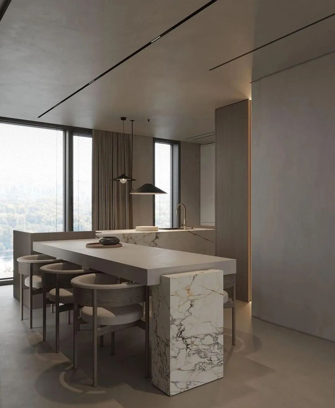 設(shè)計(jì)師選用極簡主義風(fēng)格塑造空間,利用原木大理石等天然材料,豐富空間的細(xì)節(jié),提升整體的質(zhì)感。簡潔的形式包含復(fù)雜的系統(tǒng),營造出輕盈的空間氛圍。