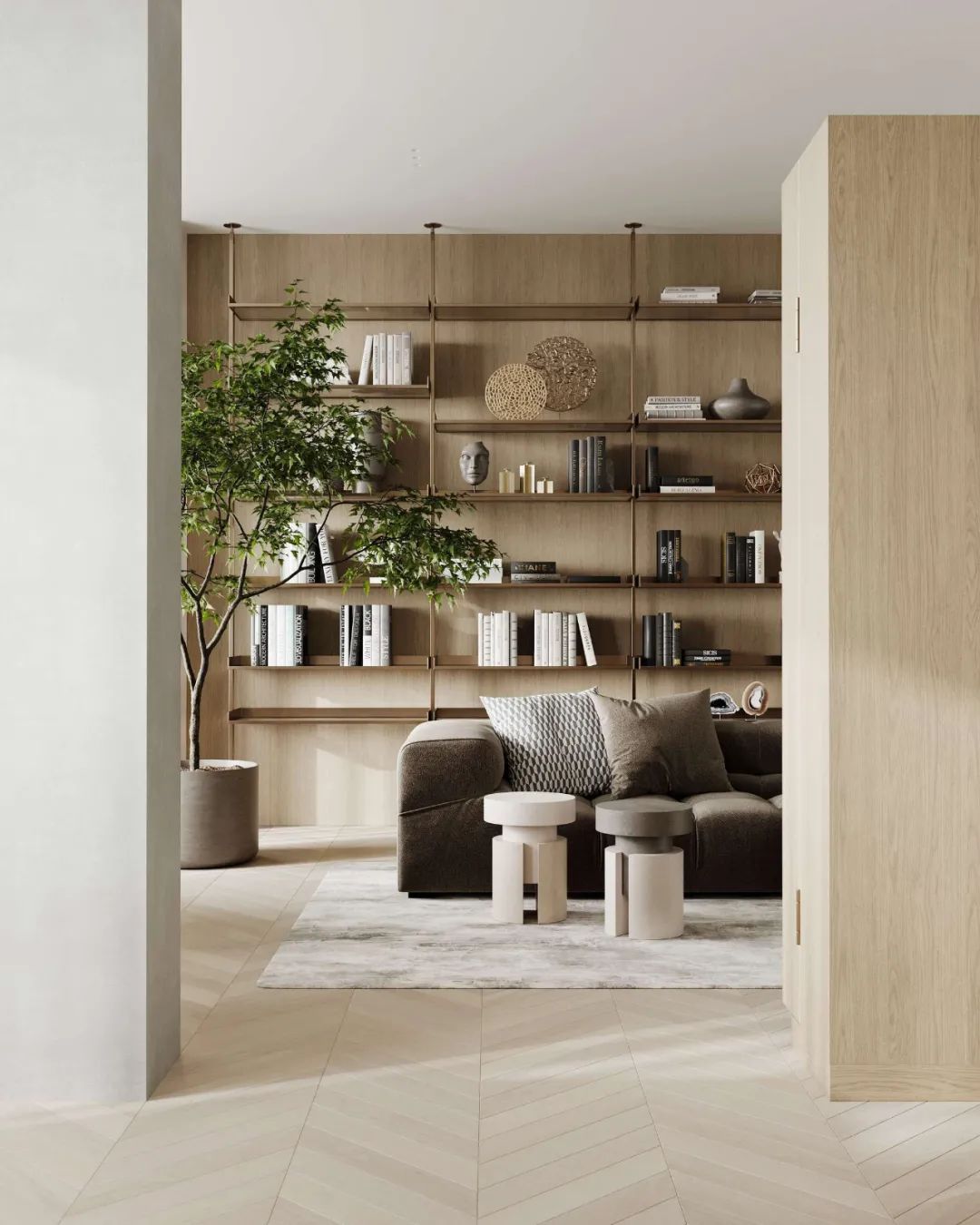 130平方米的公寓當中,設計師選用簡潔的顏色,加上日本傳統(tǒng)元素打造整個空間的舒適,現(xiàn)代美感同時又豐富了空間的細節(jié)變化。