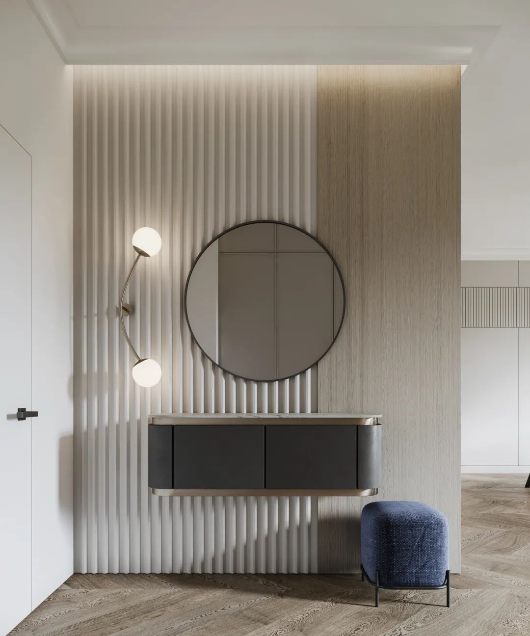 米色作為整個空間的主色調(diào),貫穿家庭里的每個角落中。暖色系的燈光照射在實木的地板上,襯托出整個空間的寧靜與優(yōu)雅。