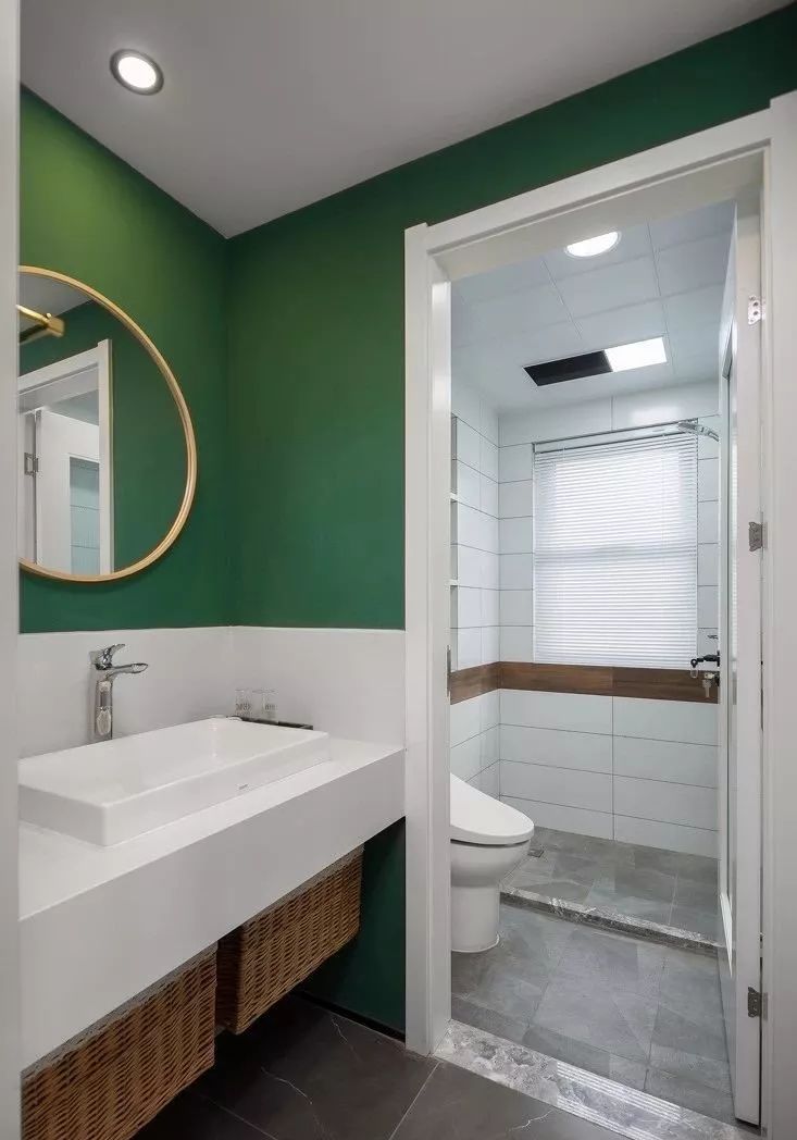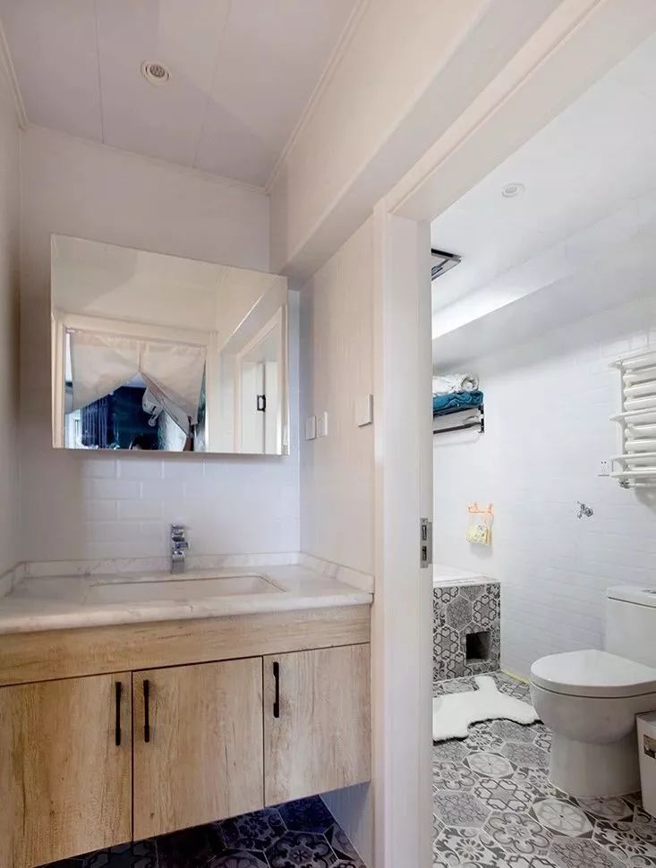 色彩搭配上也不宜過多,小空間顏色多會顯亂,淺色墻面深色地面的正常搭配就足夠了,想要來點新意,馬桶或洗手臺區(qū)域用花磚點綴,這樣的衛(wèi)生間就足夠好看了。
