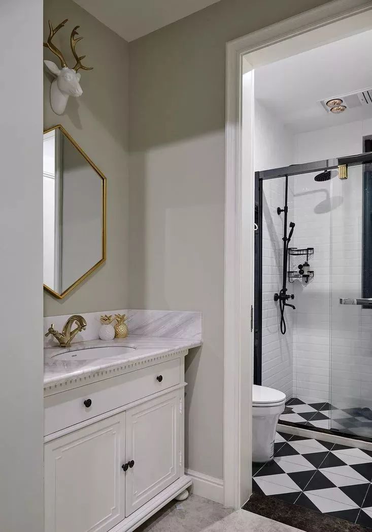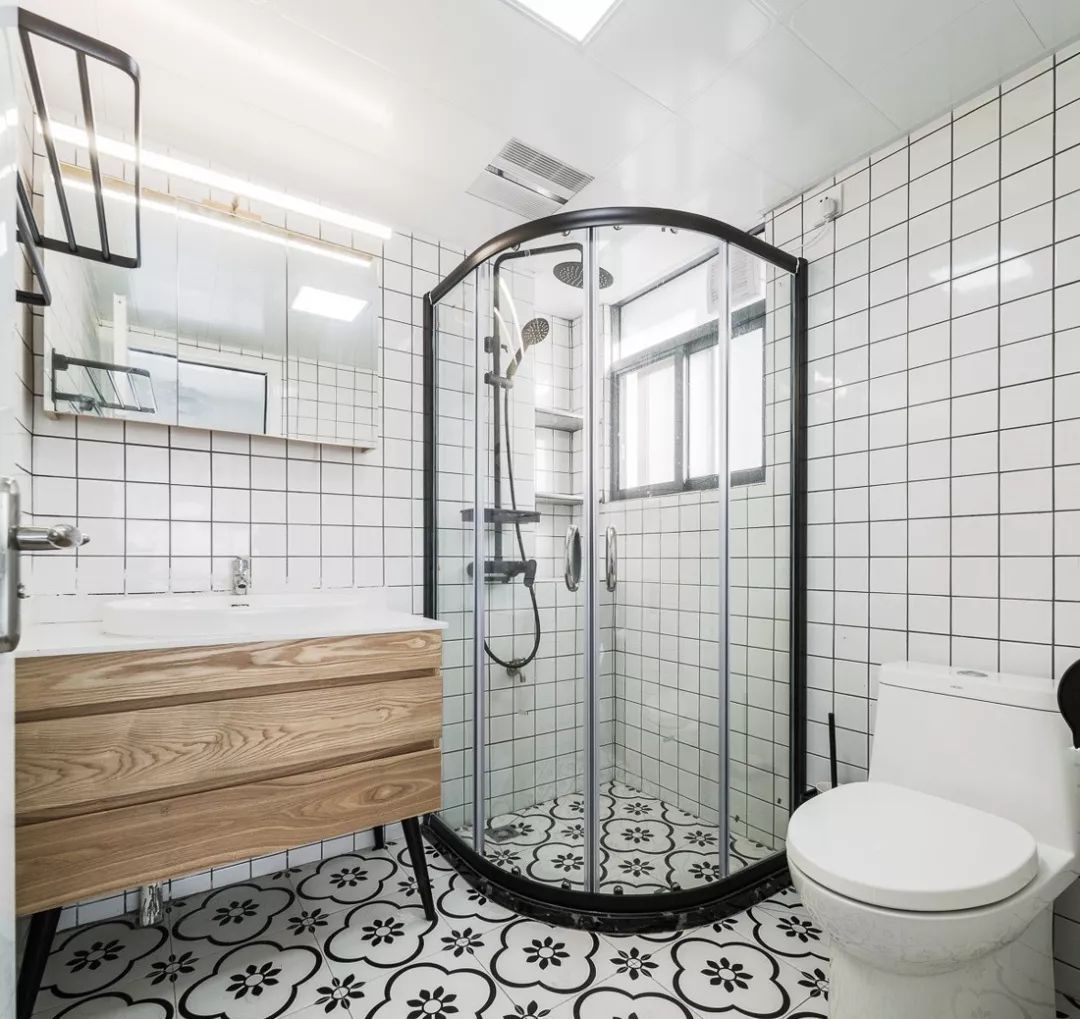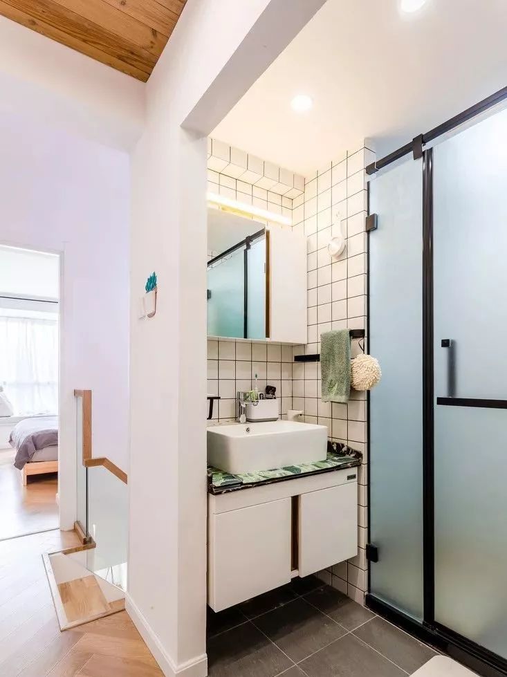 雖然空間小,干濕分離也是可以做到的,最簡單的方法就是做淋浴房。推薦選擇U型或鉆石型,尺寸不小于80cm*80cm的淋浴房。可以通過減少邊角,讓空間變得靈活,分區(qū)不會太死板。