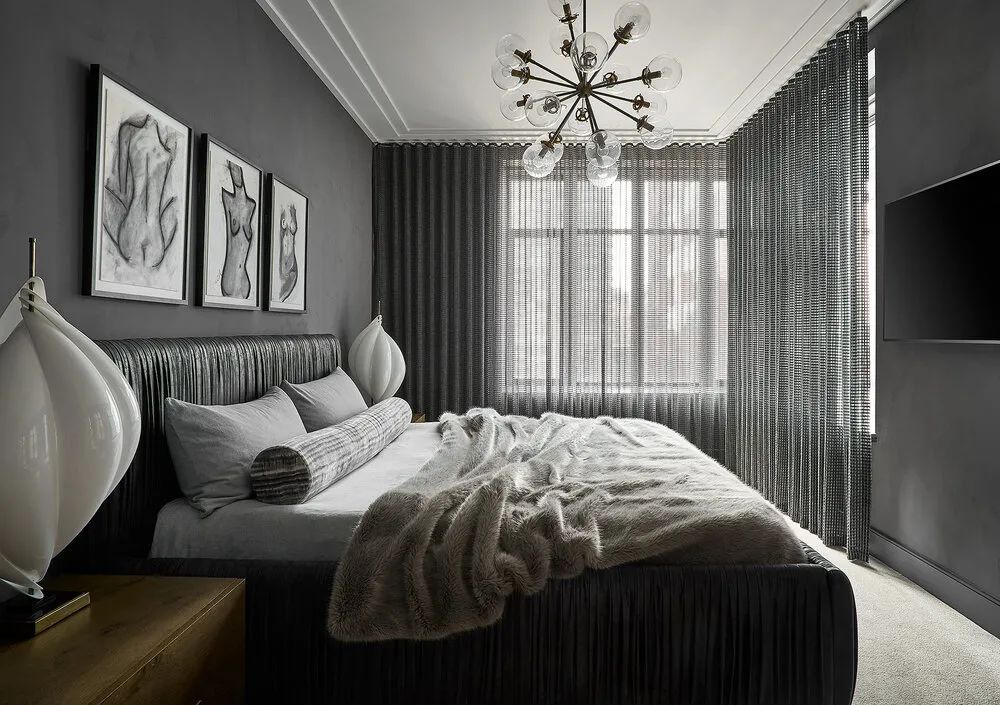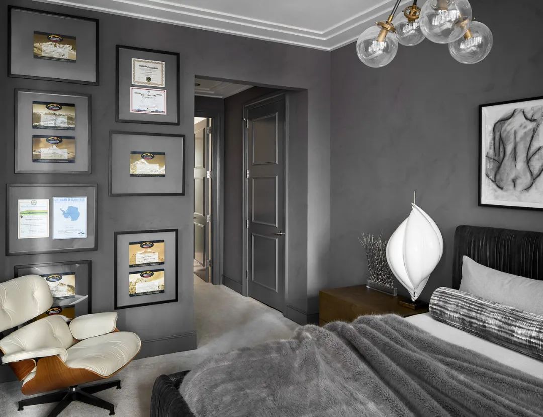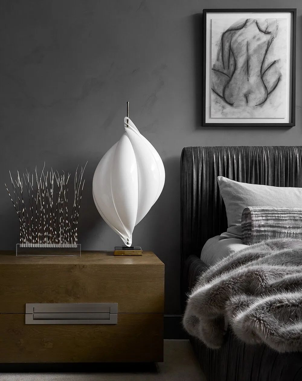 臥室整體氛圍使用灰色來穩(wěn)重居家調(diào)性,床頭燈和極簡掛畫,都增添了相當(dāng)?shù)默F(xiàn)代時(shí)尚感,令空間層次充實(shí)豐盈。