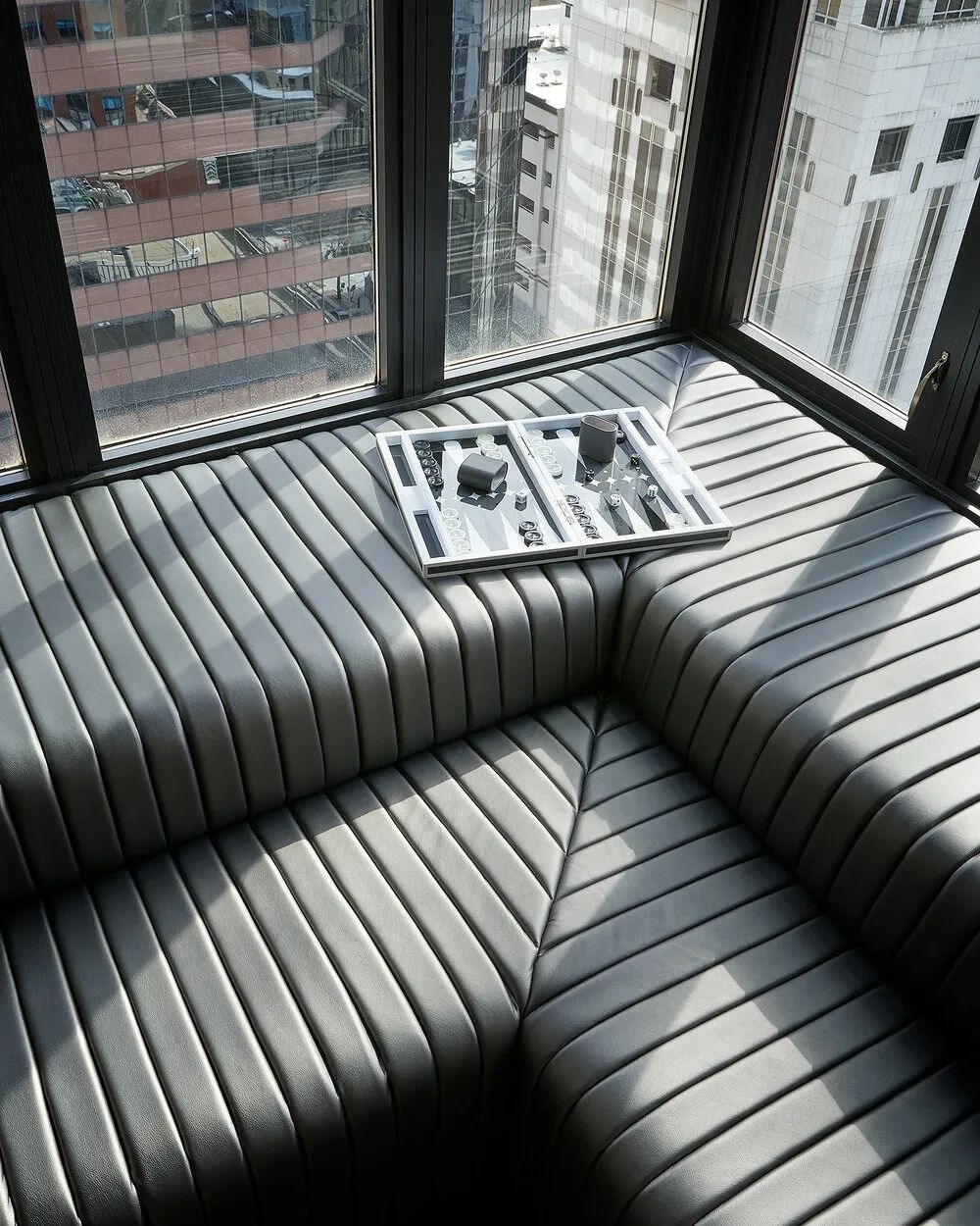 從造型沙發(fā)椅到不規(guī)則茶幾,每一件物品都是經(jīng)過設(shè)計(jì)師精挑細(xì)選的,陽臺一角擁有大面積的充足光線, 讓人愜意十足。