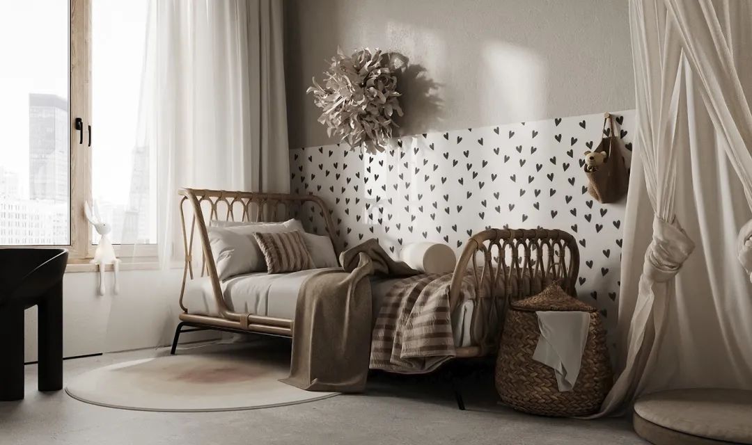 兒童房內(nèi),除了整體風格相統(tǒng)一之余,另外添加了些充滿童心的元素。不論是小帳篷的設計還是類似搖籃一樣的床鋪,都讓空間的氛圍變得更加活潑夢幻。