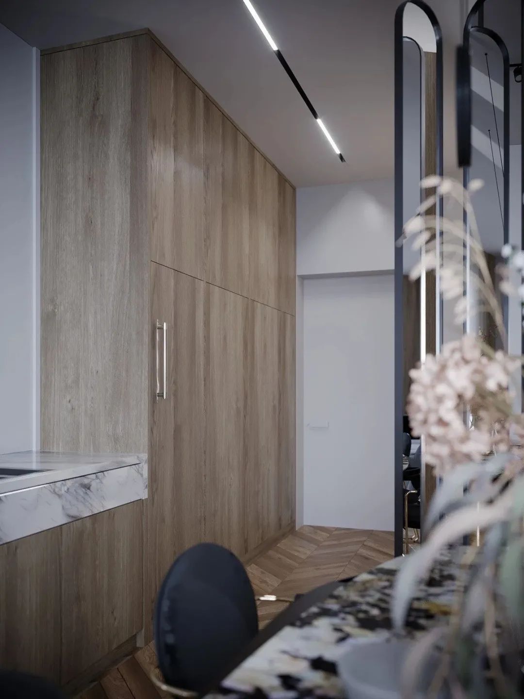 ,面積為60㎡。設(shè)計(jì)師在設(shè)計(jì)時(shí)使用了精致的家具與干凈的線條,選用天然材質(zhì)搭配金屬,打造出精致現(xiàn)代風(fēng)小宅。在滿足舒適的日常生活的同時(shí),也展現(xiàn)了空間的藝術(shù)美學(xué)。